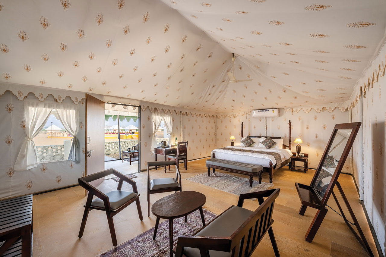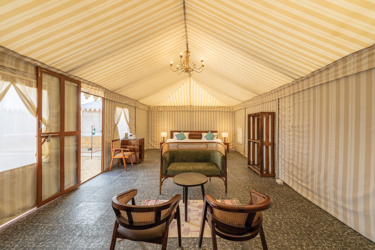 Our desert camp features comfortable and well-appointed suites that blend traditional Rajasthani architecture with modern amenities. Each suite is meticulously designed to offer you a taste of luxury in the midst of the rugged desert terrain. From the plush bedding to the elegant furnishings, every detail has been carefully crafted to ensure your utmost comfort during your stay.